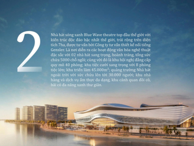 Nhà hát Sóng Xanh Blue Waves Theatre lớn nhất Đông Nam Á kiến trúc độc đáo bậc nhất thế giới, trải rộng trên diện tích 7ha, được tư vấn bởi Công ty tư vấn thiết kế nổi tiếng Gensler. Là nơi diễn ra các hoạt động văn hóa nghệ thuật đặc sắc với 02 nhà hát sang trọng, hoành tráng, tổng sức chứa 5000 chỗ ngồi; cùng với đó là khu hội nghị đẳng cấp quy mô 40 phòng; khu tiệc cưới sang trọng với 8 phòng tiệc lớn; khu triển lãm 45.000m²; quảng trường Nhà hát ngoài trời với sức chứa lên tới 30.000 người; khu nhà hàng và dịch vụ ẩm thực đa dạng, khu cảnh quan đồi cỏ, bãi cỏ đa năng xanh thư giãn.